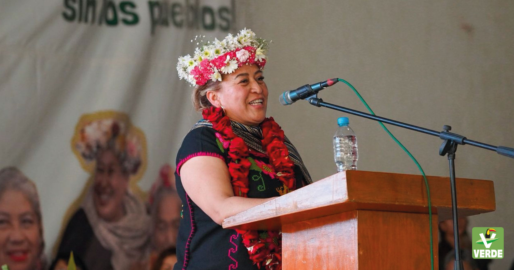 Finalmente, integrantes de la comunidad y pueblos originarios de la alcaldía Tlalpan realizaron una ceremonia tradicional y entregaron a la diputada ecologista un bastón de reconciliación con la madre tierra, como un reconocimiento respetuoso a ejercer su labor con responsabilidad y compromiso. En el acto, reiteraron el mensaje: "La madre tierra no se vende, se protege".